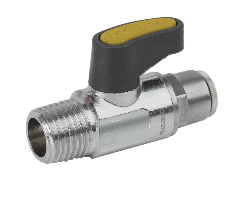 Mini Brass Ball Valve, 2 Piece, MNPT x Push Fit Connection, 145 PSI