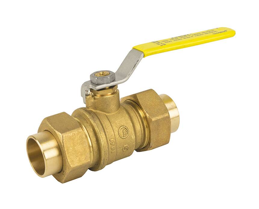 Brass Ball Valve, 2 Piece, Full Port, Solder Connection, Double Union End, 400 WOG