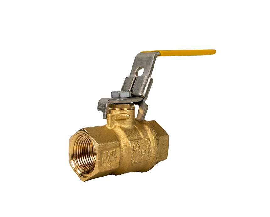 Brass Ball Valve, 2 Piece, Full Port, Threaded Connection, Locking Handle, 600 WOG