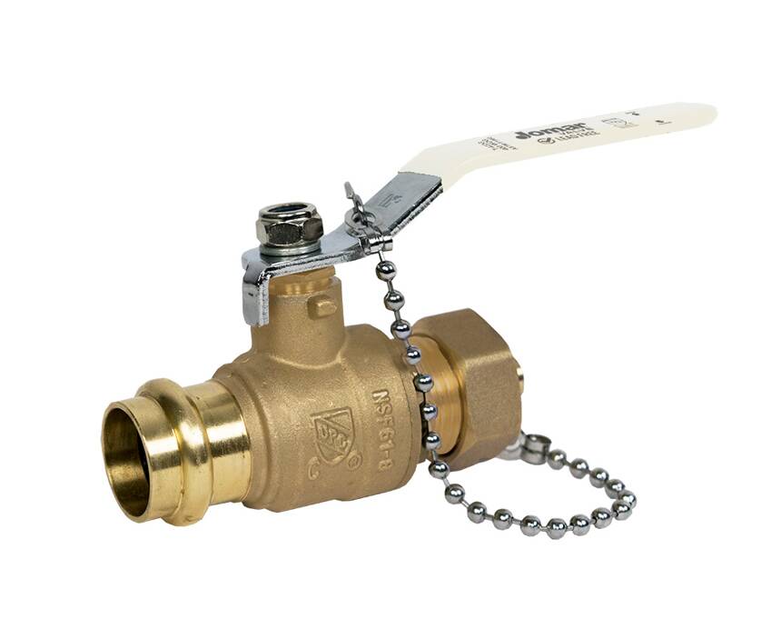 Lead Free Brass Ball Valve, 2 Piece, Full Port, Press x Hose Connection with Cap and Chain, Stainless Steel Trim, 250 WOG