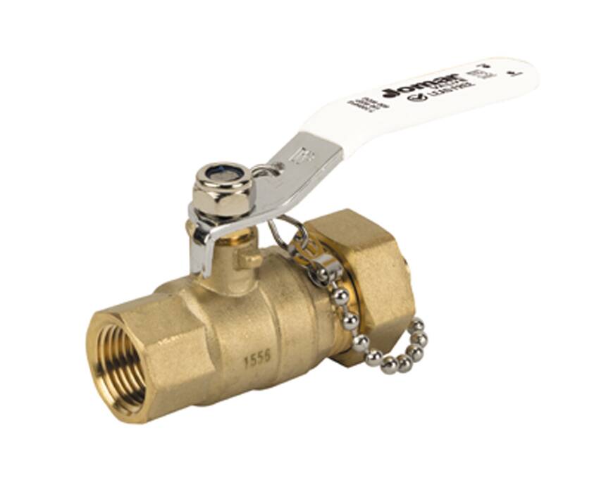 Lead Free Brass Ball Valve, 2 Piece, Full Port, Threaded x Hose Connection with Cap and Chain, Stainless Steel Trim, 600 WOG