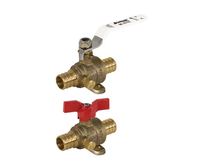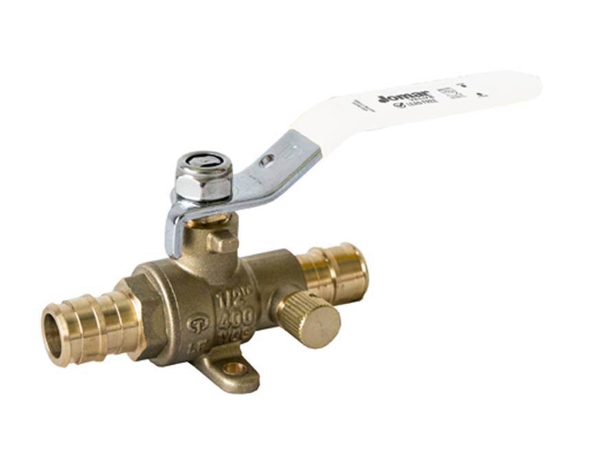 Lead Free Brass Ball Valve, 2 Piece, Crimp Pex Connection with Drain, 600 CWP