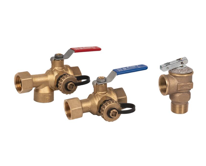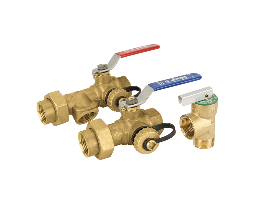 Lead Free Brass Ball Valve, Tankless Water Heater Valve Kit, 3-Way Ball, Threaded or Solder Connection, Without Relief Valve Port, 600 WOG