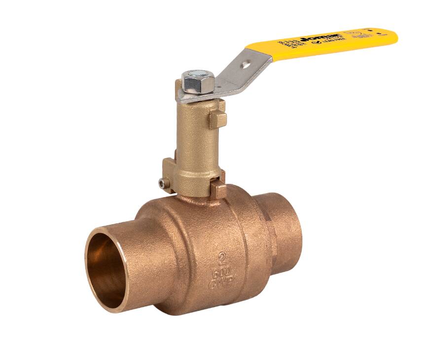 • Lead Free Bonze Ball Valve, 2 Piece, Full Port, Solder Connection, Stainless Steel Trim, Extended Handle, 600 CWP, 150 WSP