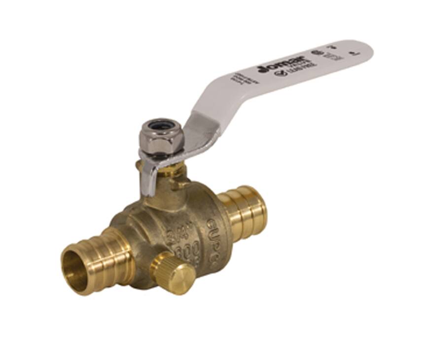 Lead Free Brass Ball Valve, 2 Piece, Crimp Pex Connection with Drain, 600 CWP